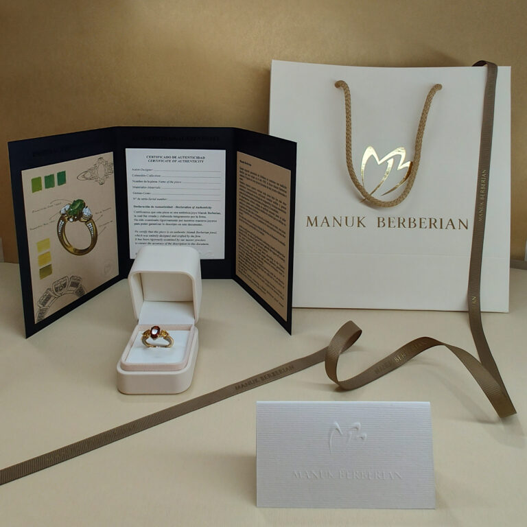 Cada una de nuestras creaciones ha sido minuciosamente elaborada a mano y se entrega con el embalaje de MANUK BERBERIAN.
